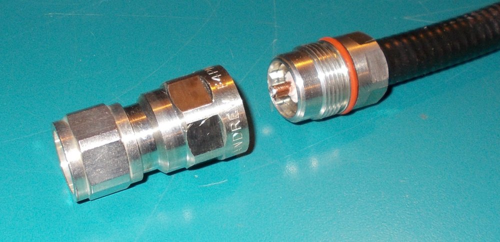 Shown is the old style cable and connector. The center pin requires to be soldered. Andrew Company made this years ago with the part number of 44ASW