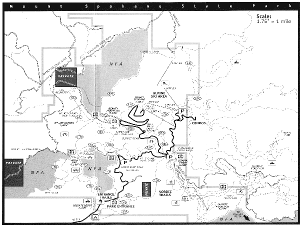 Mt. Spokane is just a few miles NorthEast of Spokane Washington. It's a ski and sled area, and being a State Park the licenses are enforced. Park hours are 8am ~ 10pm, but check the signs and local information on the hours. Overnighter parking is not allowed and everything is closely enforced at the Park. It can be frustrating for those few that wish to be "free" of all the BS rules and such. The major of sledders enjoy the area. If you obey the rules and have tabs, you should be fine. It typically has wind blown hard snow, but occasionally there is a nice dump of fresh powder to make a fun day. It's mostly trails with a small play area on Mt. Kit Carson and another larger one in the back side of the main mountain from 25 mile trail ride, that goes completely around the mountain. If you are from Spokane it's a great testing run, since it's so close and normally there are other people on the weekend around in the event you have trouble. It is a controlled area, so watch out for the boundary signs. Just take SR-206 to the parking lot. It's about 20 miles from downtown Spokane.